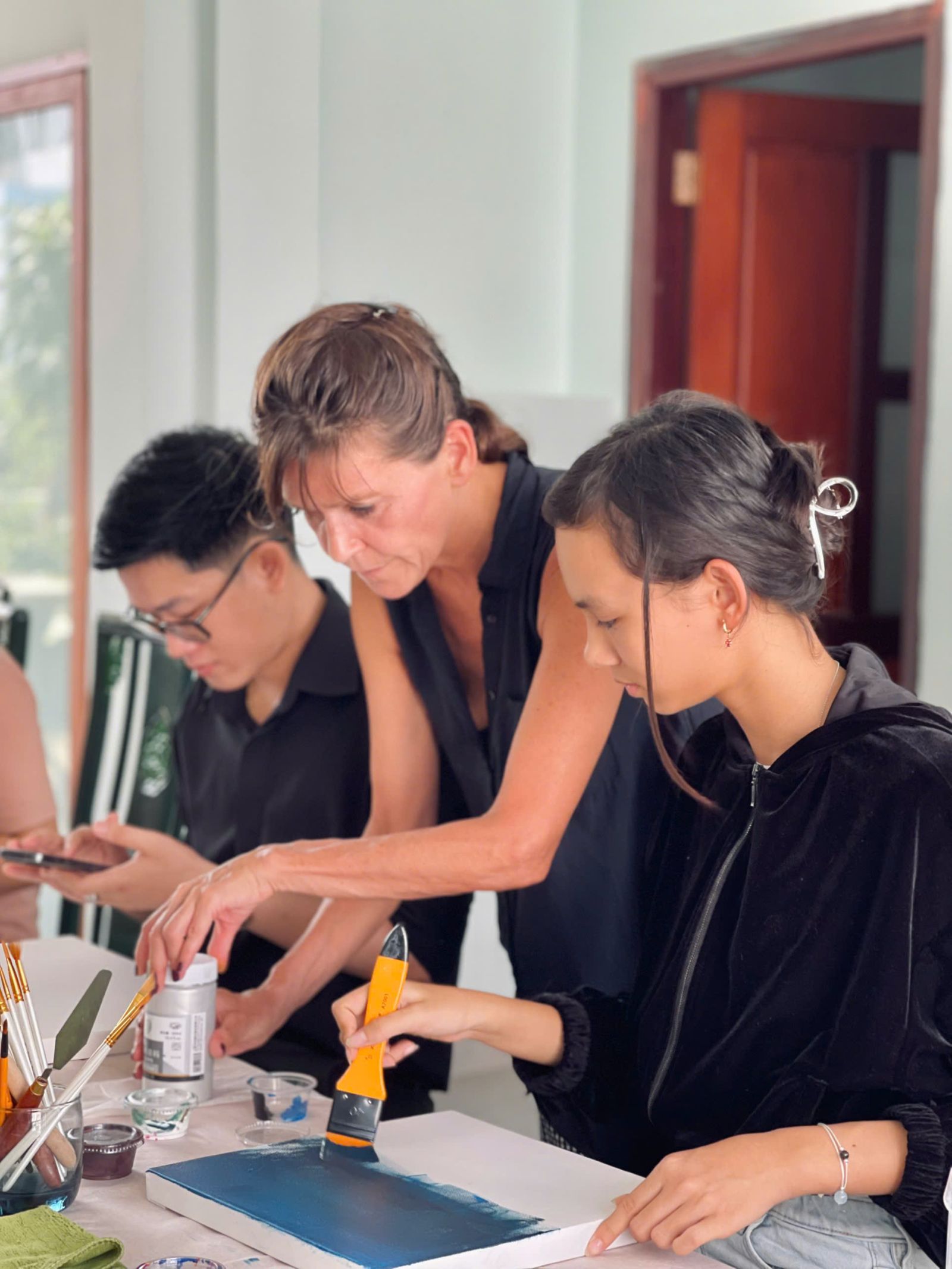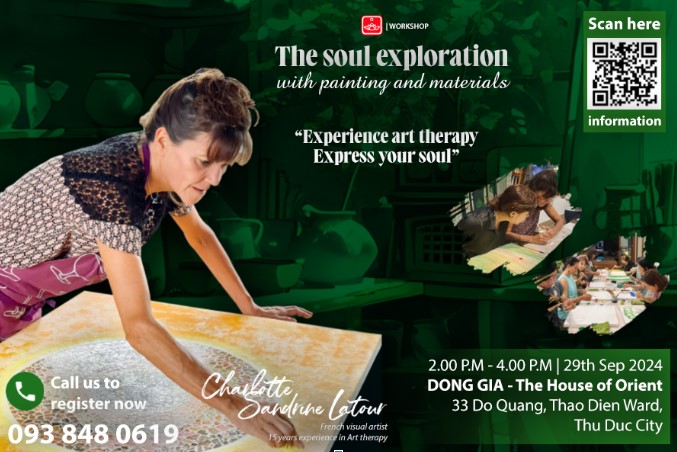 Trong đó, chuỗi workshop “A soulful exploration of painting and materials” được dẫn dắt bởi nghệ sĩ thị giác - hoạ sĩ Charlotte Sandrine Latour. Với hơn 15 năm kinh nghiệm cùng vốn văn hoá quốc tế rộng khắp, nghệ sĩngười Pháp này sẽ mang lại một không gian thú vị, với đa dạng phương pháp kết hợp màu sắc, chơi đùa với đa dạng vật liệu thường nhật mà bạn có thể áp dụng về sau, tại nhà. Đáng chú ý, từ 20028, workshop “Les Ateliers de Charlotte” ra đời tại Pháp, với mô hình “painting therapy workshop” chào đón khoảng 60 người từ trên 4 tuổi tham gia hàng tuần. Hoạt động này nhận được sự hưởng ứng đong đảo, và được nhận định là trải nghiệm cảm xúc đặc biệt. Workshop tại Đông Gia tiếp nối hoạt động này tại nhiều quốc gia khác ngoài quê hương cô ở Pháp. Do đó, kinh nghiệm kết nối cảm xúc với hội hoạ phong phú này giúp nghệ sĩ hướng dẫn mọi người tiếp cận cuộc đối thoại của nghệ thuật và