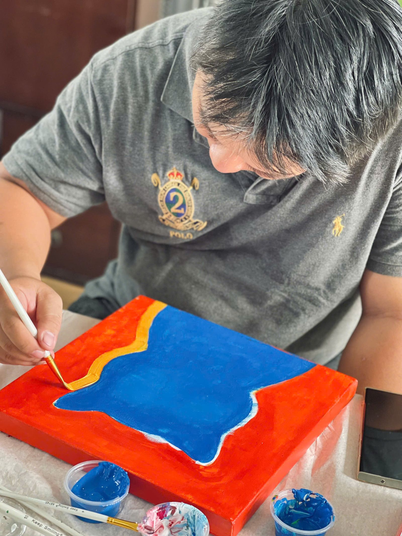 “Khác với những workshop mình từng tham dự, người tham dự thường vẽ theo mẫu có sẵn. Workshop ở Đông Gia cho phép mình tự do thể hiện, trải nghiệm sự kết hợp thú vị của màu và vật liệu để tạo ra những hoạ tiết, hình ảnh thú vị.” - Bạn Ngọc Minh chia sẻ.
